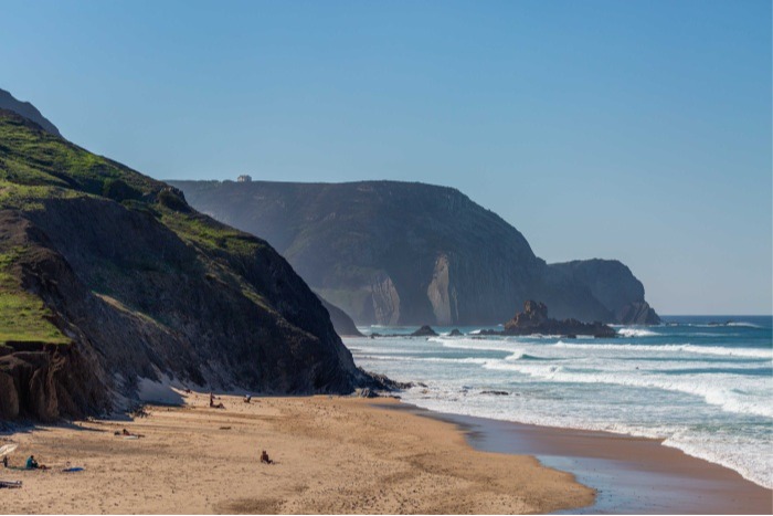 Situada em uma área de proteção ambiental, a Cordoama encanta com suas falésias imponentes e ondas fortes. É uma das preferidas por surfistas, mas também agrada quem busca paisagens de tirar o fôlego e ambiente mais rústico.